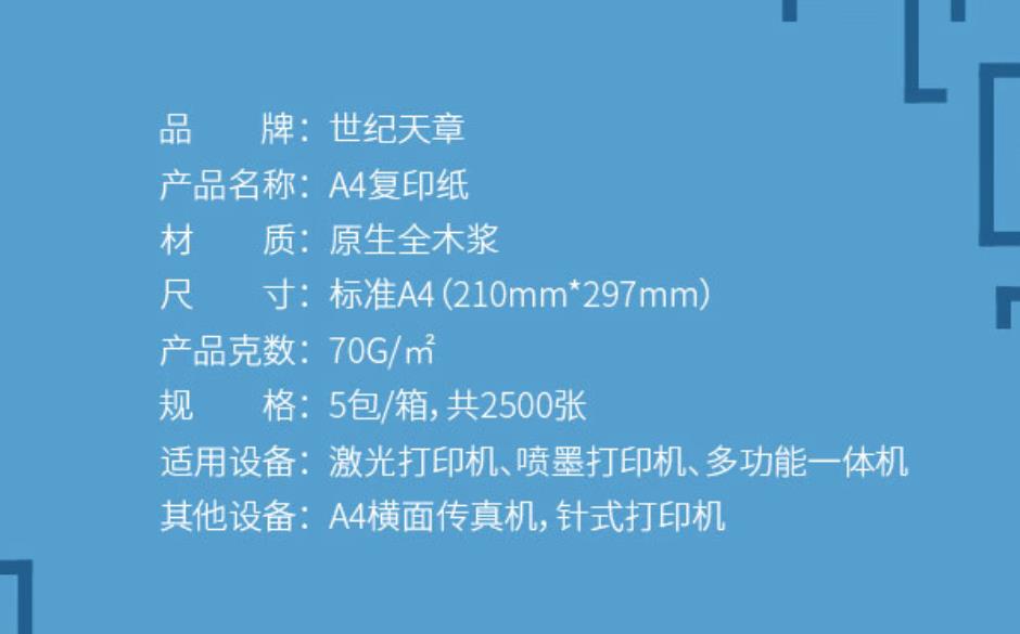 包装清单  :   500张/包*5包/箱(2500张)*1