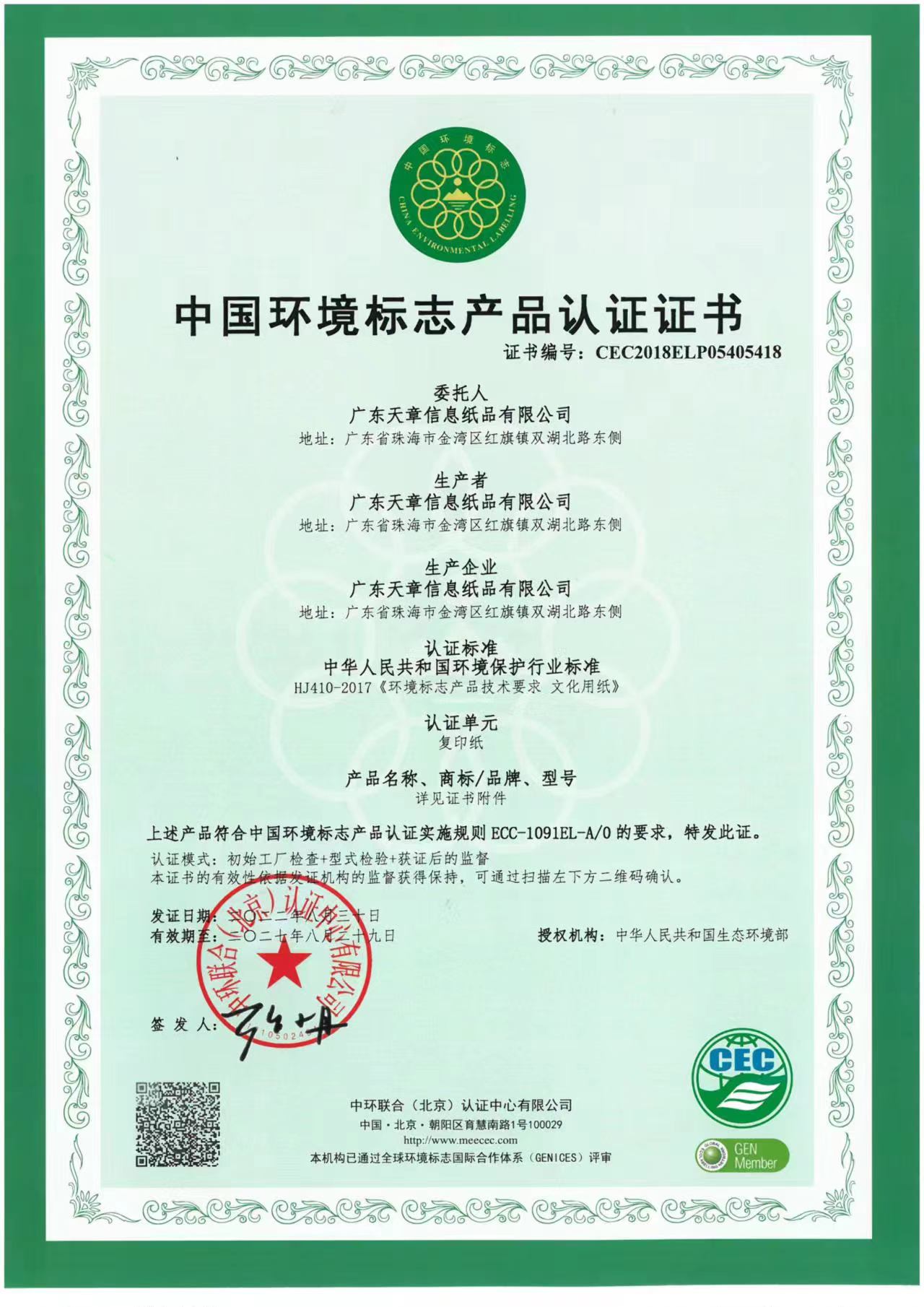 中国环境标志产品认证证书有效期  :   无