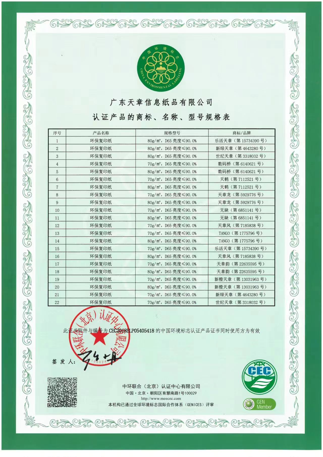 中国环境标志产品认证证书编号  :   无